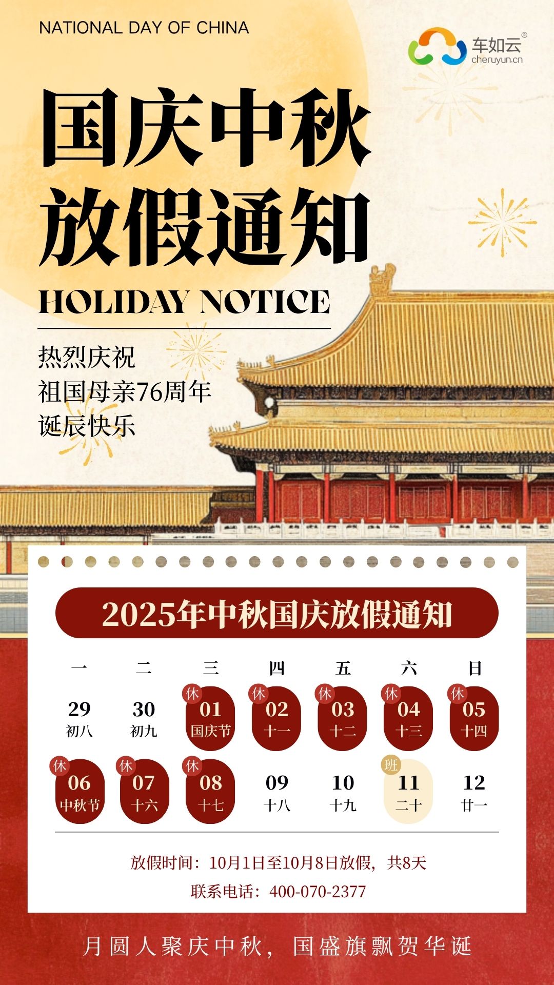 2025年国庆&中秋放假通知